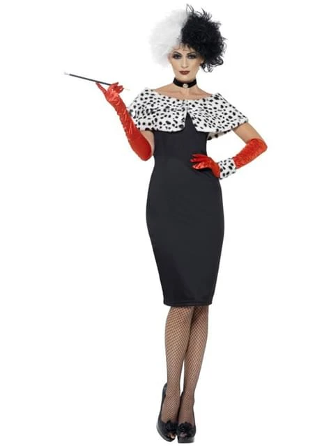 Elegante y malvada a la vez estarás con este disfraz de Cruella.