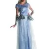Este impresionante disfraz de Evanora incluye un precioso y largo vestido verde , con mangas de tul de color negro, y plumas en los hombros. Además, incorpora una magnífica diadema con plumas negras.