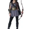 Este disfraz de Katniss Everdeen está compuesto por una camiseta de manga larga negra con armadura incorporada, pantalones, también largos y negros, con rodilleras y espinilleras incorporadas, y por último algo que no podía faltar, ¡el pin de sinsajo! El look más guerrero de Katniss Everdeen ahora puede ser tuyo.