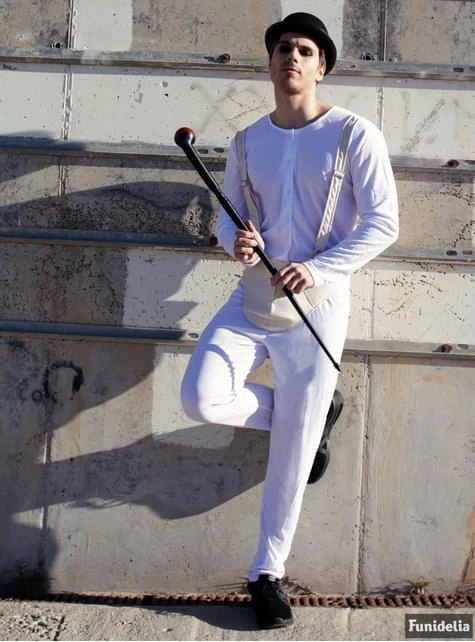 Y ahora tu podrás convertirte en el protagonista de en esta pelĂcula con este traje de la Naranja Mecánica compuesto por un mono blanco de cuerpo entero y unos tirantes con coquilla de color carne, tambiĂ©n caracterĂstica en el aspecto de los protagonistas de la pelĂcula.