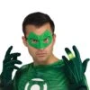 Incluye un mono alienígena verdoso y negro con pecho musculado en el que incorpora el logotipo de Green Lantern, cubrebotas, anillo no luminoso y una máscara con los detalles de su apariencia y su famosa cicatriz como el la película Linterna Verde del 2011