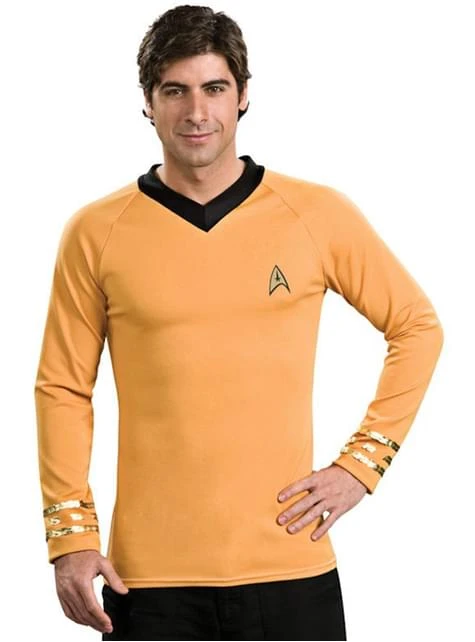 Explora el espacio siendo un oficial de la flota estelar en la sección de mando con este Disfraz de Star Trek clásico dorado.