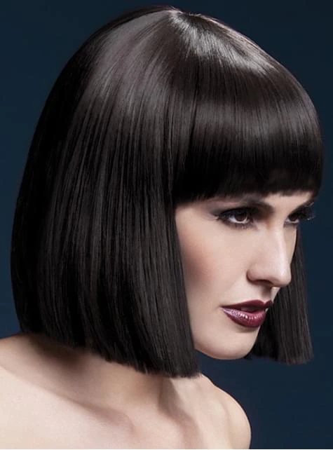 Incluye una peluca corte bob lisa, 30 cm. con flequillo recto de color castaño.