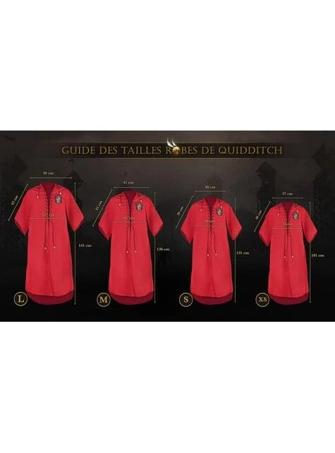 Incluye: réplica de calidad de la túnica de la famosa saga; juego de letras y números para personalizarla a tu gusto (se aplican mediante planchado)