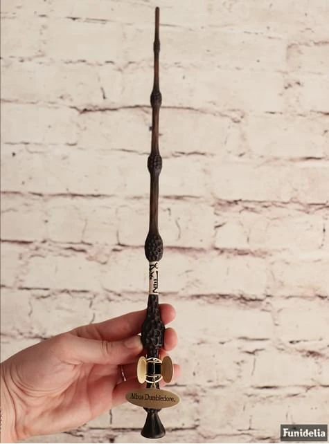 Varita de sauco réplica de la usada por Albus Dumbledore en Harry Potter y Las Reliquias de la Muerte. Incluye varita de 36 cm fabricada en resina, y estuche.